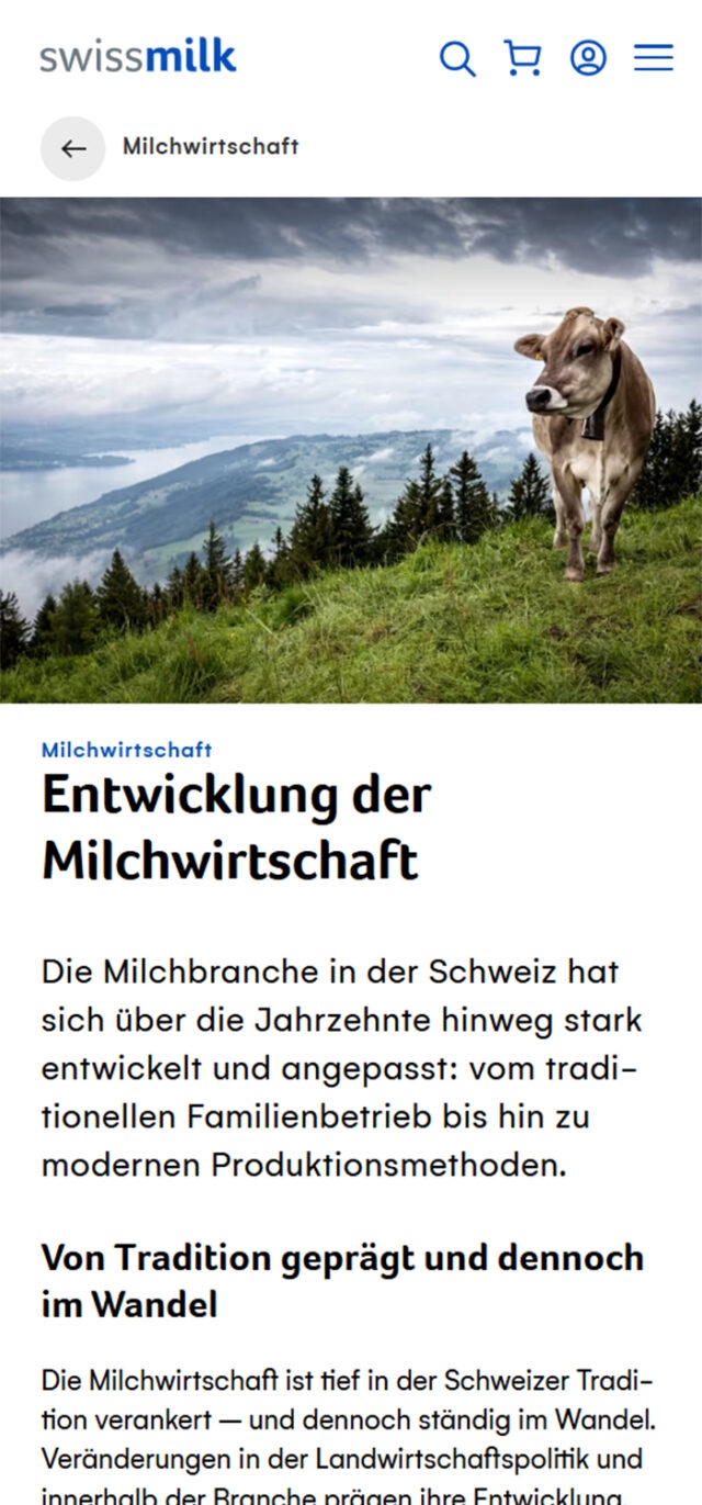 Wichtige Kriterien für die Umsetzung waren eine gut funktionierende Suche sowie ein optimierte SEO. Der Magazinbereich wurde komplett neu gestaltet. Zusätzlich zum Bereich für Milchkonsument:innen sollte auch der Bereich für die Milchproduzent:innnen mit einem umfangreichen News- und Informationsangebot neu erstellt werden.